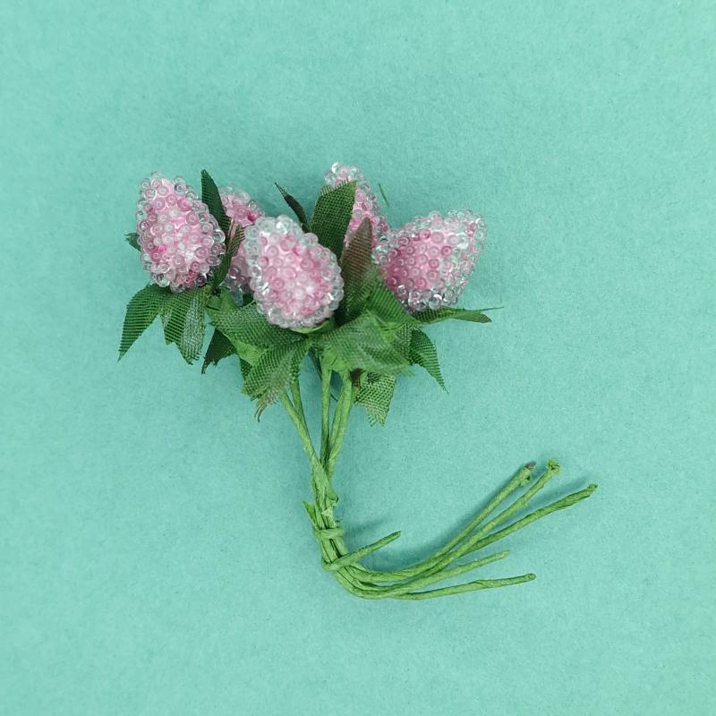 Декоративные ягоды МАЛИНЫ в крупном сахаре на проволоке розового цвета.