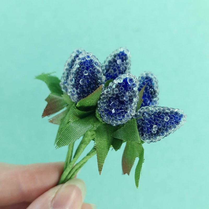 Декоративные ягоды МАЛИНЫ в крупном сахаре на проволоке синего цвета.