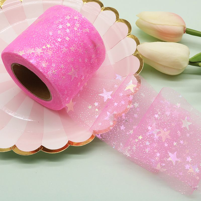 Блестящее решение для вашего творчества! Узкий декоративный фатин с рисунком из звезд — это универсальный материал для создания нежных и эффектных деталей. Формат пятиметровой ленты шириной 5.5 см особенно удобен для мастеров, создающих серии украшений или занимающихся праздничным оформлением в Алматы.