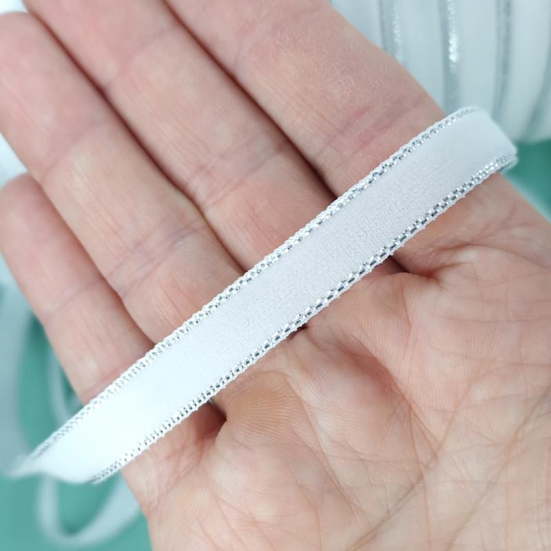 Бархатная лента шириной 1 см с серебренным люрексом по краю.