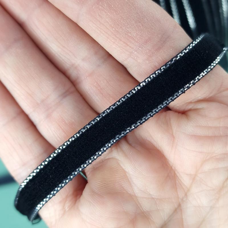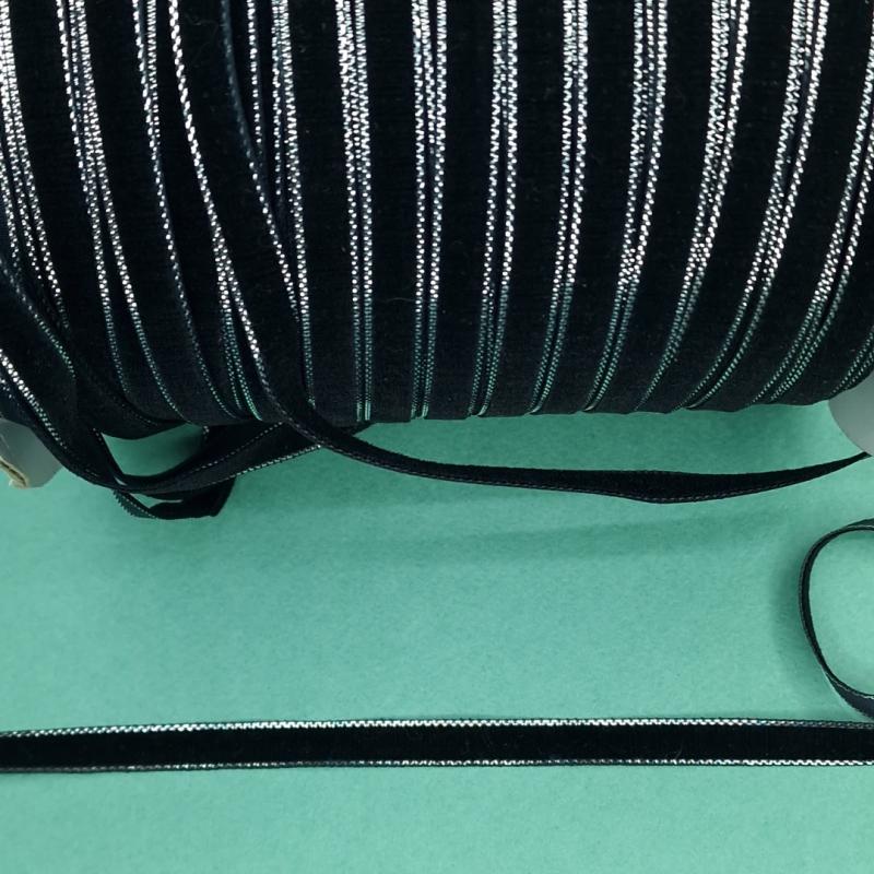 Бархатная лента шириной 1 см с серебренным люрексом по краю.
