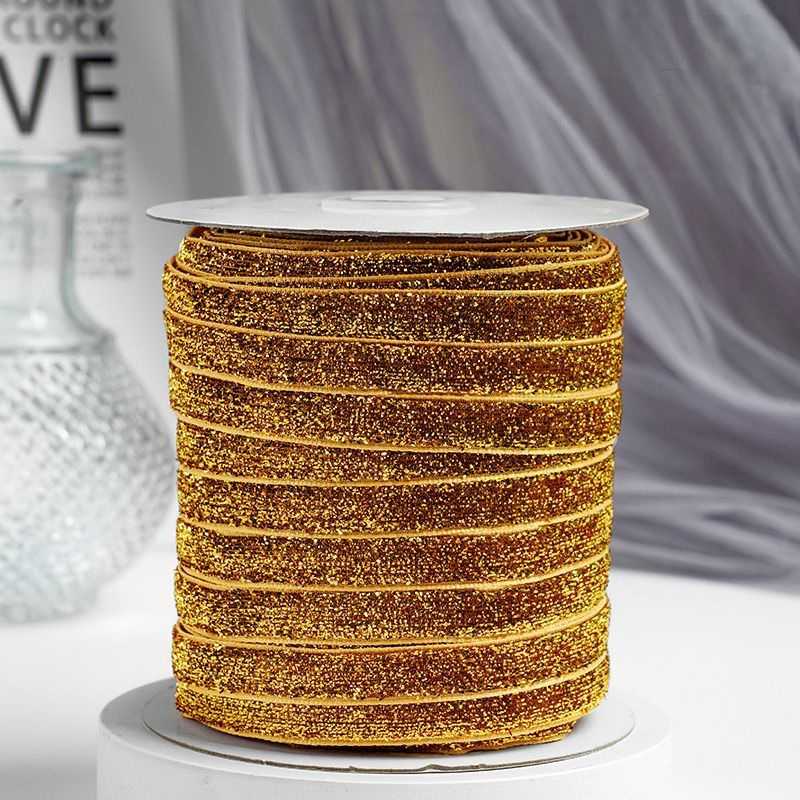 Золотая бархатная лента с люрексом.