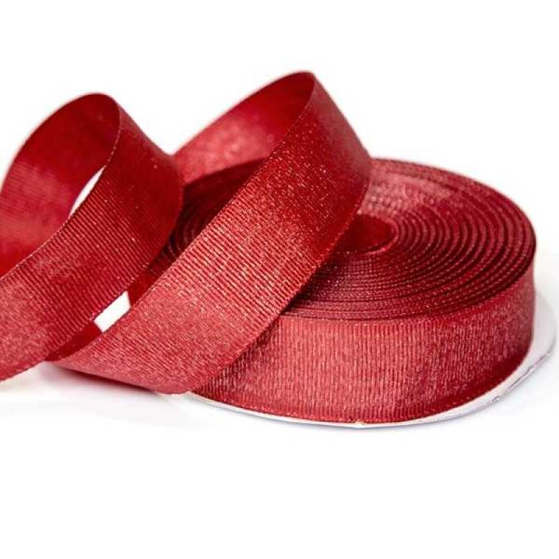 Репсовая лента ЛЮРЕКС красного цвета, подходит для изготовления декоративных изделий в технике скрапбукинг или канзаши.