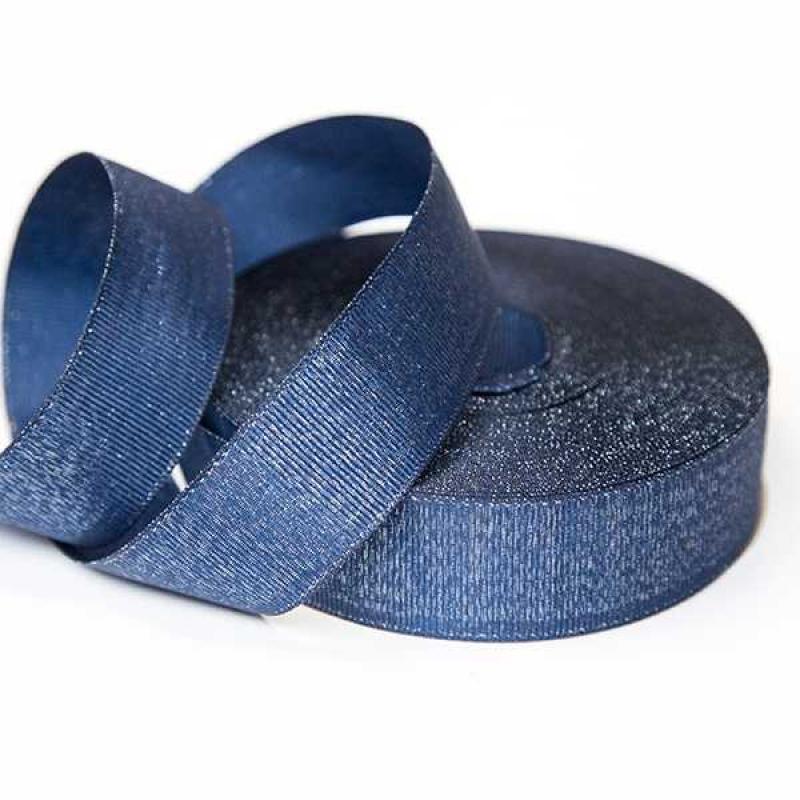 Репсовая лента ЛЮРЕКС синего цвета, подходит для изготовления декоративных изделий в технике скрапбукинг или канзаши.