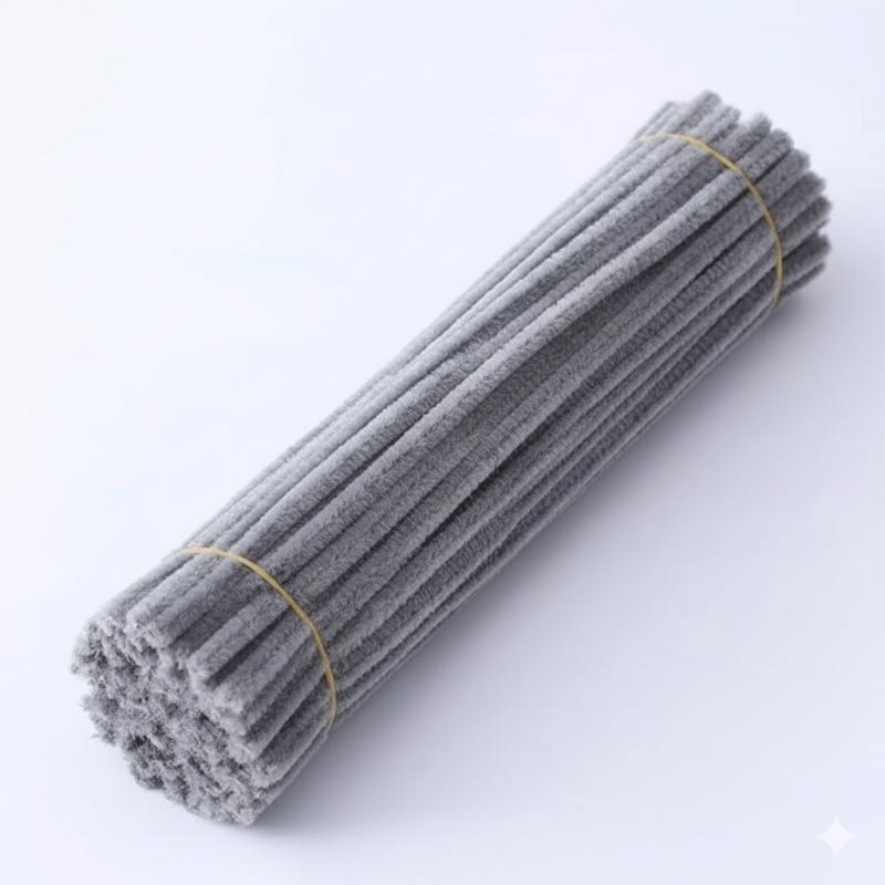 Мягкая и очень пушистая синельная проволока серого цвета.