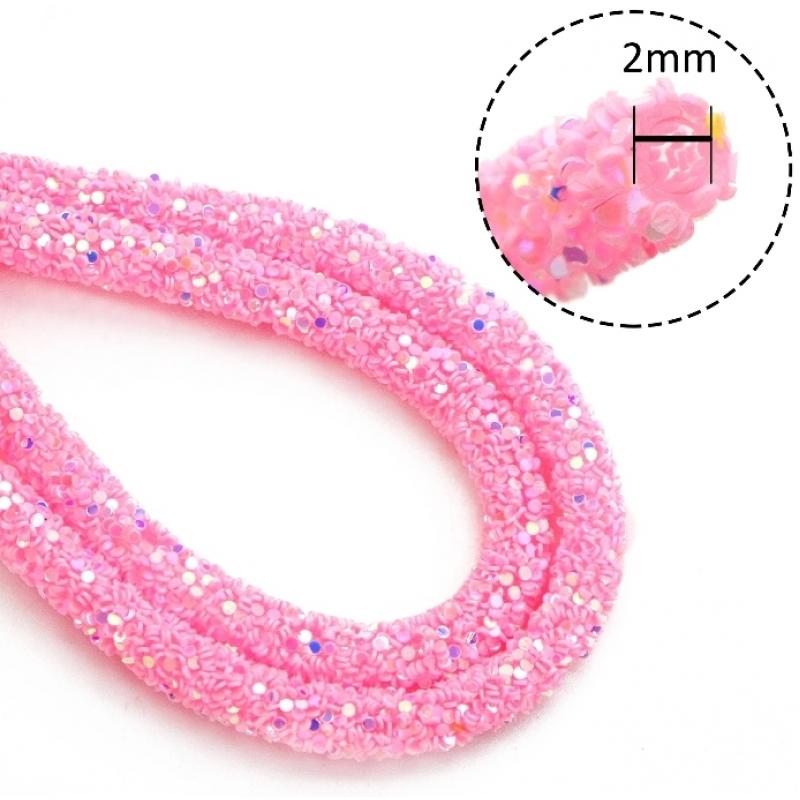 Полый силиконовый светло-розовый шнур с БЛЕСТКАМИ для создания различной бижутерии: ободков, браслетов, серег, бус и колье. Имеет гибкую структуру, диаметр отверстия 2мм, что позволяет внутрь шнура вдевать мемори проволоку, ободок, либо любую другую основу.