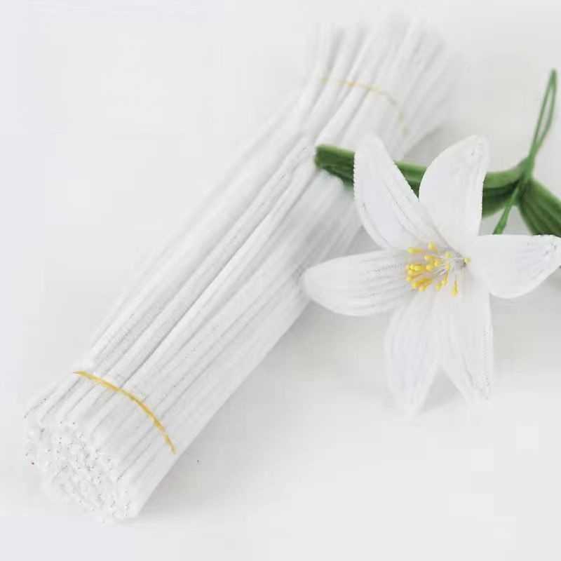 Мягкая и очень пушистая синельная проволока белого цвета.