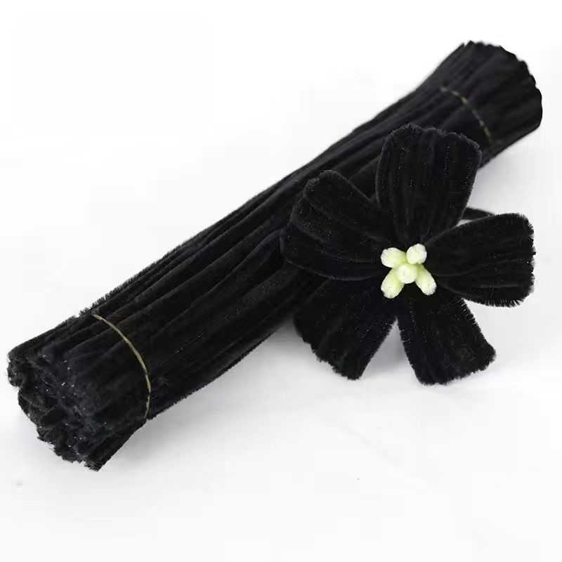 Мягкая и очень пушистая синельная проволока чёрного цвета.
