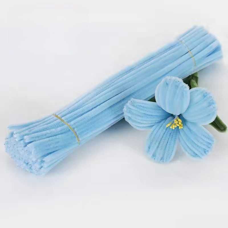 Мягкая и очень пушистая синельная проволока голубого цвета.