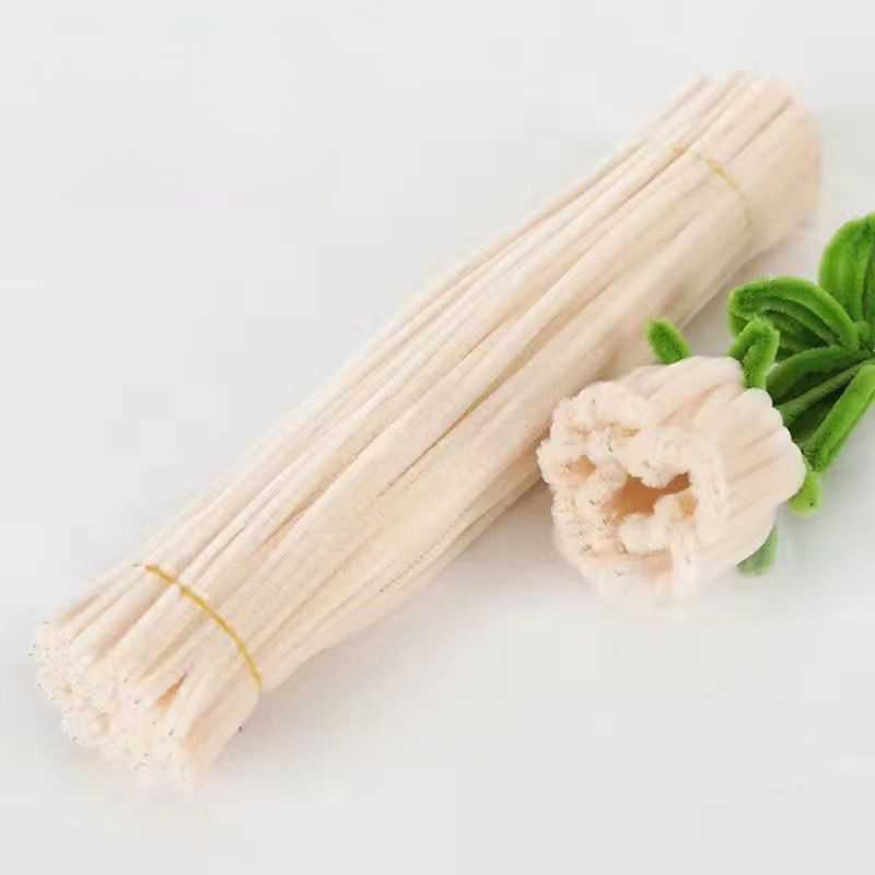 Мягкая и очень пушистая синельная проволока молочного цвета.