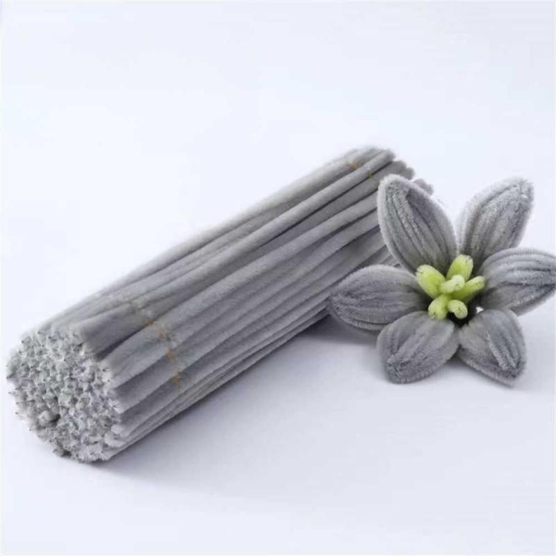 Мягкая и очень пушистая синельная проволока серого цвета.