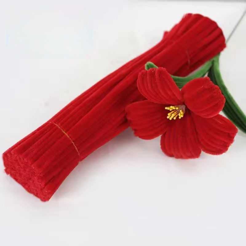 Мягкая и очень пушистая синельная проволока тёмно-красного цвета.